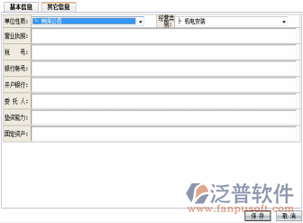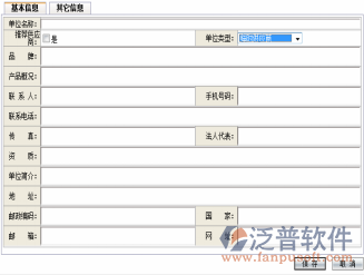 羅列了基本信息和其他信息兩個(gè)標(biāo)簽,點(diǎn)擊不同的標(biāo)簽輸入相關(guān)的單位信息內(nèi)容,信息輸入無誤后點(diǎn)擊“保存”功能按鈕,單位信息添加成功;