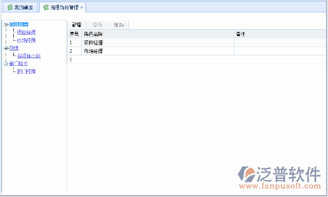 登錄項(xiàng)目管理系統(tǒng),點(diǎn)擊功能菜單,工作流設(shè)置->流程角色管理,系統(tǒng)轉(zhuǎn)入流程角色管理信息列表,系統(tǒng)界面如下圖:
