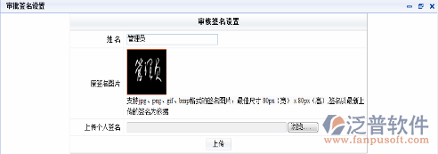 在圖-<審批簽名設(shè)置.設(shè)置>中,按照系統(tǒng)要求,上傳簽名或圖片,在審核記錄中可查看。