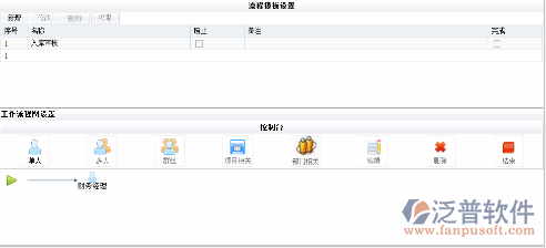 圖-<流程模板.瀏覽>,選擇新添加的流程模板信息,在下半幀對(duì)該流程模板進(jìn)行設(shè)置,點(diǎn)擊流程啟動(dòng)“