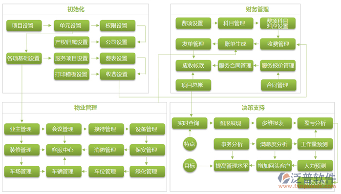 ■ 物業(yè)管理系統(tǒng)將物業(yè)的企業(yè)內(nèi)部訂單、外包業(yè)務(wù)區(qū)分實行治理,企業(yè)內(nèi)部主營業(yè)務(wù)(含有客戶關(guān)系管理、客服服務(wù)治理、工程施工物業(yè)設(shè)備管理、能源管理、保潔景色治理、安保人員處理、泊車管理、物業(yè)公司繳費管理、車子管制、下腳料自動化倉庫、員工治理等)主要是使用流程、各部門相互之間的協(xié)同辦公平臺,外包主要業(yè)務(wù)主要是對契約執(zhí)行關(guān)注與對辦事效率代理商的效率品牌評估;