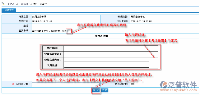 點(diǎn)擊考評(píng)主題進(jìn)入填寫考評(píng)明細(xì),如圖: