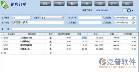 系統(tǒng)可實現(xiàn)單次及批量訂單,訂單管理與庫存管理相連接,并且在下訂單時有庫存預(yù)警及提示功能,訂單管理同時與客戶管理相連接,可查詢歷史訂單情況以及訂單的執(zhí)行情況。