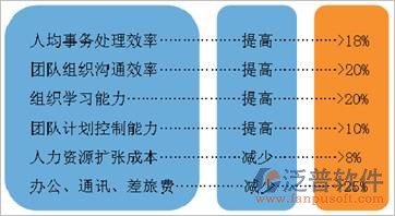 多年來,OA軟件商和很多用戶都一直在探索對OA軟件的價值作出更具體的評估。泛普軟件根據(jù)對用戶的調(diào)查,以及相關研究,認為一個優(yōu)秀的OA軟件如果得到有效的應用,那么它可以發(fā)揮出下面表格中的作用: