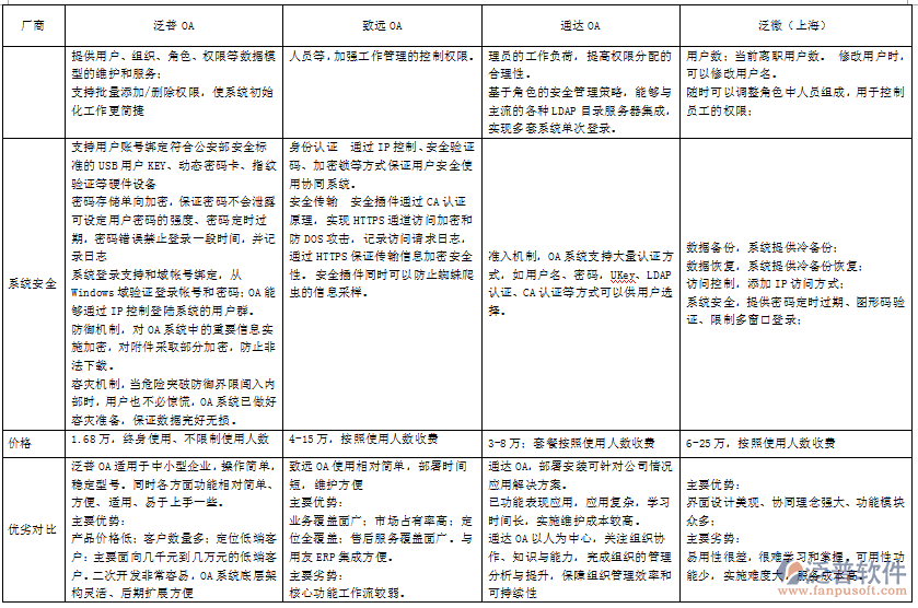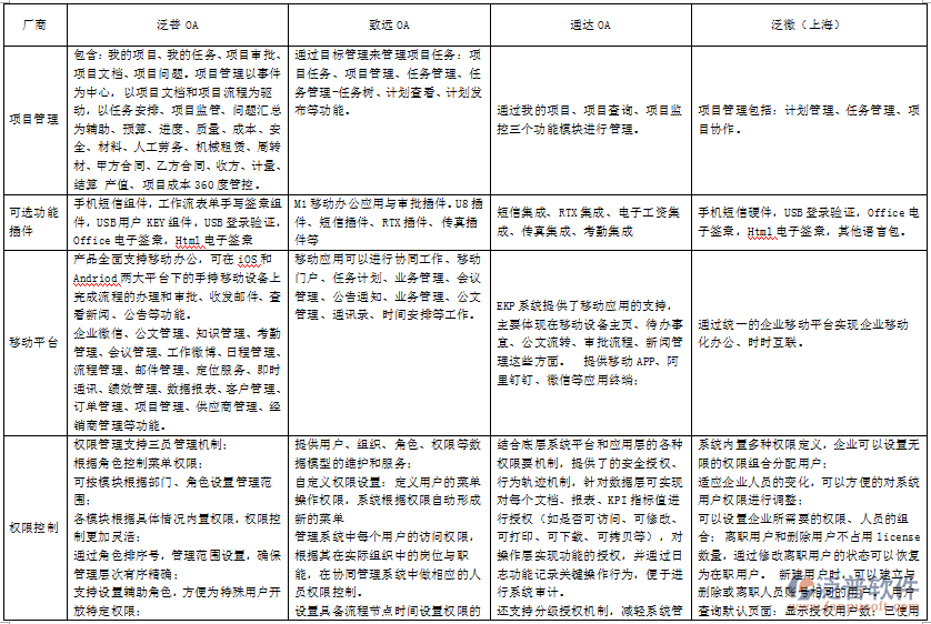 OA辦公系統(tǒng)知名品牌廠商功能對比