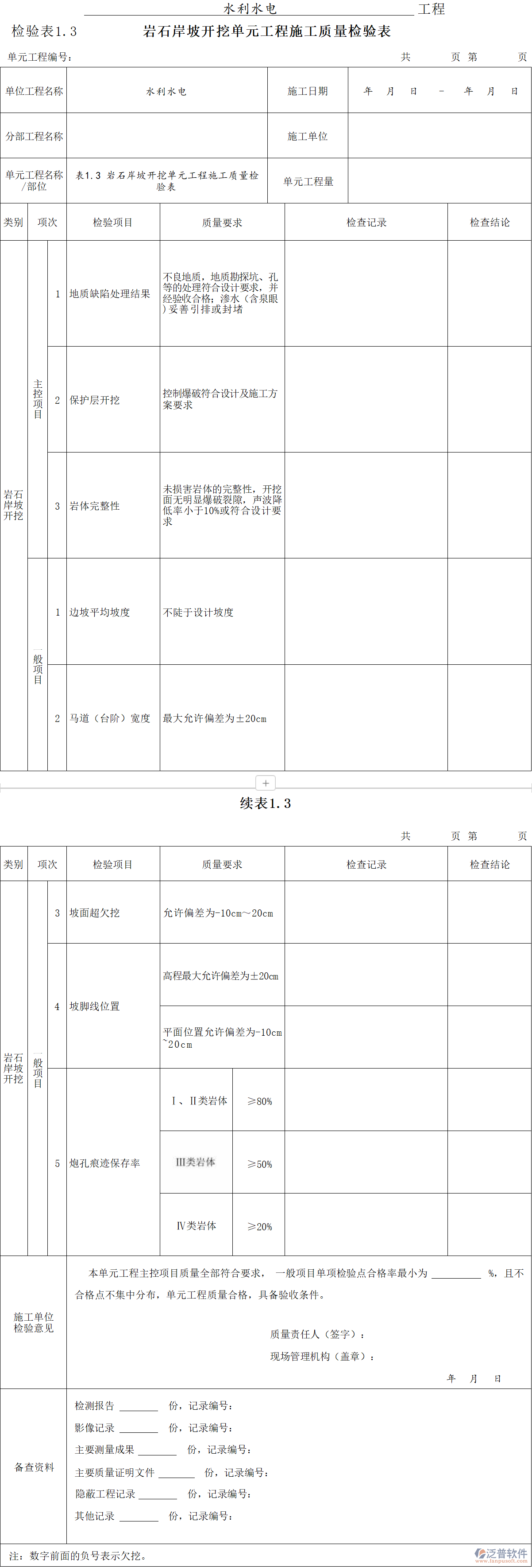 水利水電巖石岸坡開挖單元工程施工質(zhì)量檢驗(yàn)表