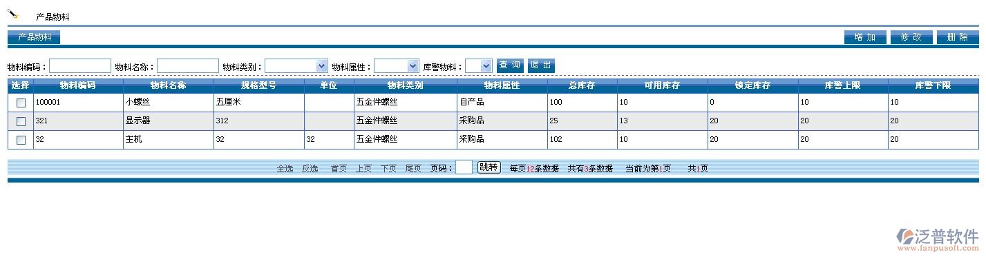 1. 物料沒有區(qū)分倉庫,庫存在:“產(chǎn)品與物料管理”——“產(chǎn)品物料”中進行查看