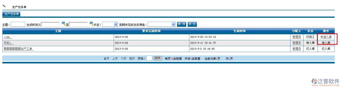 3. 完工通過審批以后,再申請入庫: