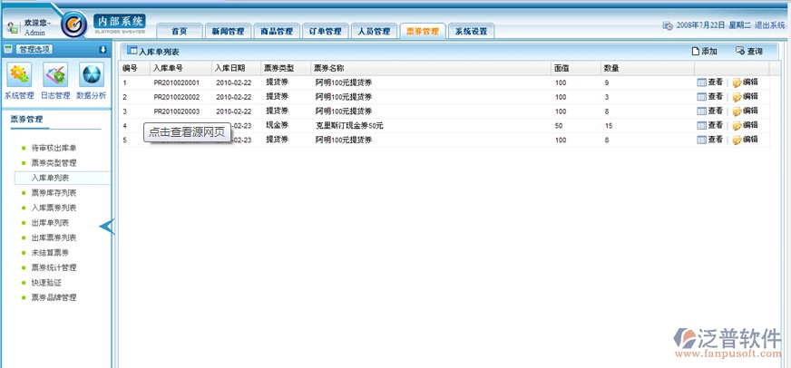 泛普軟件泛普OA系統(tǒng)訂單管理系統(tǒng)經(jīng)營情況表讓你對經(jīng)營中的情況了如指掌。 月結(jié)存,年結(jié)存。 庫存管理 同價、變價調(diào)撥管理,報損、報溢管理,贈送、獲贈管理。 對采購的商品調(diào)整成本。 對庫存的狀況及分布查詢。 對庫存商品所有變化過程進行了解。 有效期查詢、批次查詢。