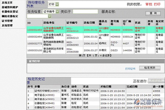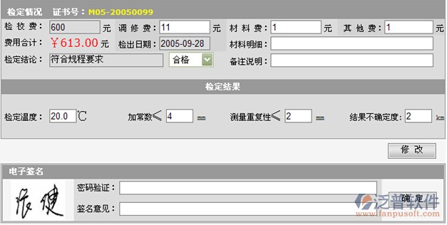 系統(tǒng)的基本工作流程為送檢登記----檢定----檢定簽名----核驗----批準----打印證書----證書審核