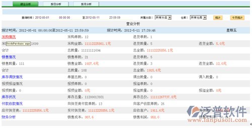 統(tǒng)計出營業(yè)過程中的所有與庫存有關(guān)的銷售采購數(shù)據(jù),可以進行綜合分析、按日分析、按月分析。