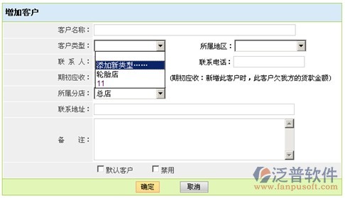 在增加修改客戶界面可以管理客戶類型。