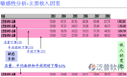 敏感性分析-主要收入因素