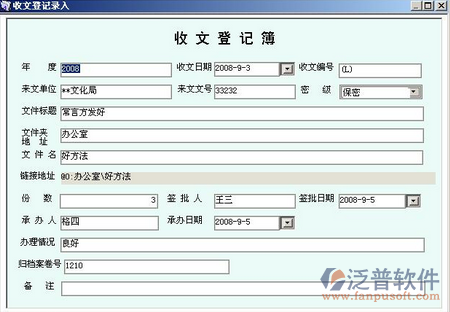 對于在辦公室工作的人來說,每天的公文收發(fā)是非常繁瑣的。目前大部分單位仍然是采用手工抄寫來完成這些繁瑣的事務。在公務繁忙時,常常有公文登記的遺漏,去向不明,甚至明明記得經(jīng)過手,卻找不到了的現(xiàn)象,現(xiàn)在好了,有了泛普軟件公文管理軟件,它可以協(xié)助您有條不紊地處理所有的事務。