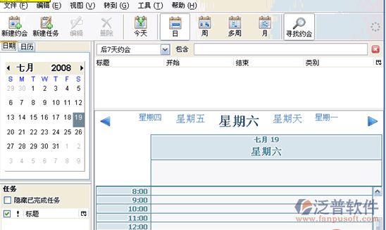 日程管理無論對個人還是對企業(yè)來說都是很重要的,做好了日程管理個人可以更好地規(guī)劃自己生活,企業(yè)能確保各 項工作及時有效推進,在規(guī)定時間內(nèi)完成既定任務。做好日程管理可以借助一些日程管理軟件,這個種類就多了,個人感覺不錯的是泛普軟件泛普OA系統(tǒng),不用下載,登陸就能使用。