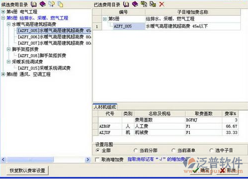 2、取費(fèi)設(shè)置:系統(tǒng)根據(jù)工程的類型和定額類別等自動(dòng)關(guān)聯(lián)到相關(guān)的費(fèi)率,大大縮減了預(yù)算人員編制的時(shí)間